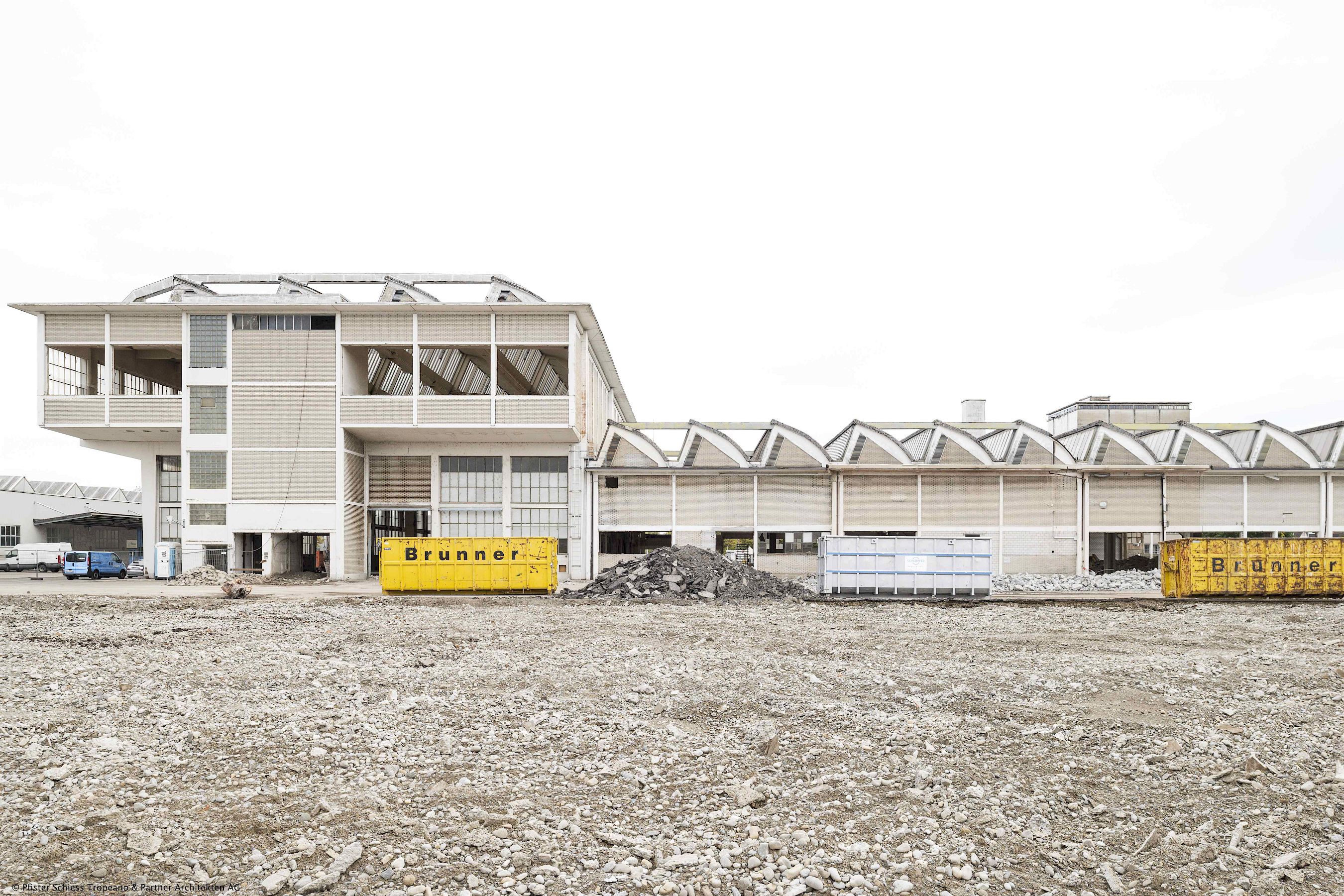 Das markante zweigeschossige, unter Denkmalschutz stehende Arbomec-Gebäude mit Baujahr 1961 und die angrenzende Werkhalle von 1952 sind dem Neuen Bauen verpflichtet und wurden, in Anlehnung an die von Georges-Pierre Dubois entworfene Shedhalle, westlich des Areals erstellt. Mit dem Nachweis das Flächenprogramm und die logistischen Ansprüche für einen Jumbo-Maximo-Baumarkt in die Bestandsbauten, sowie eines additiven Erweiterungsbaus unterzubringen, konnte auch die nicht unter Schutz stehende Werkhalle erhalten werden.